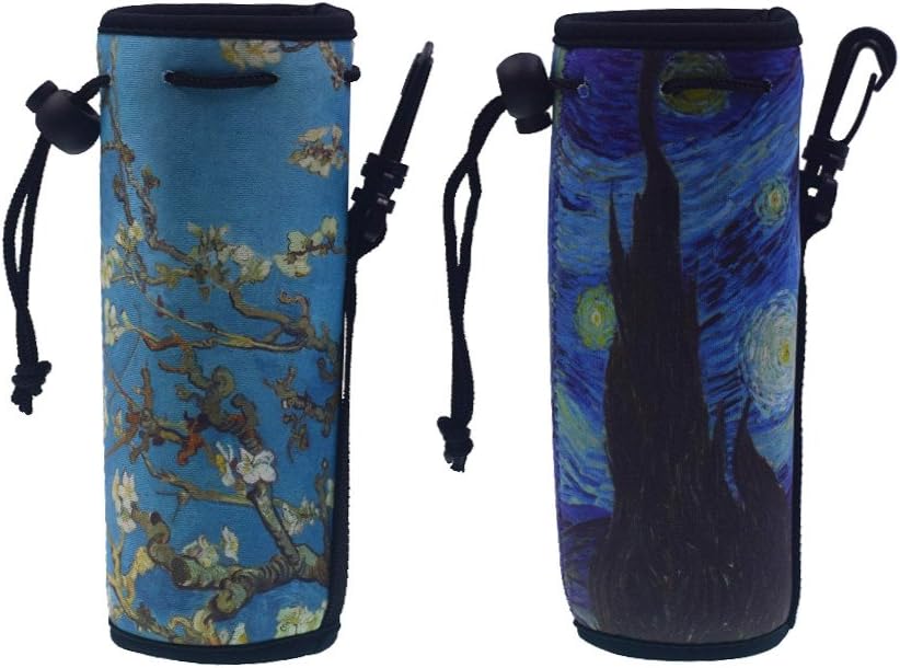 Amazon Com E Living 500ml 16 9 Oz Collapsible Neoprene Water Bottle Drawstring Cooler Coolie Cover Insulator Holder Huggie Sleeve 2 Pack 10 Colors Almond Blossom Starry Night Kitchen Dining