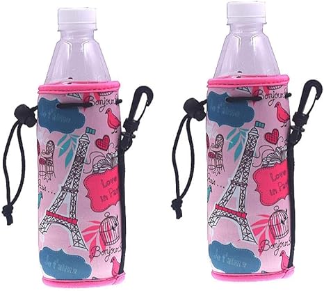 Amazon Com E Living 500ml 16 9 Oz Collapsible Printed Neoprene Water Bottle Drawstring Cooler Coolie Cover Insulator Holder Huggie Sleeve 2 Pack 12 Colors Love In Paris Kitchen Dining